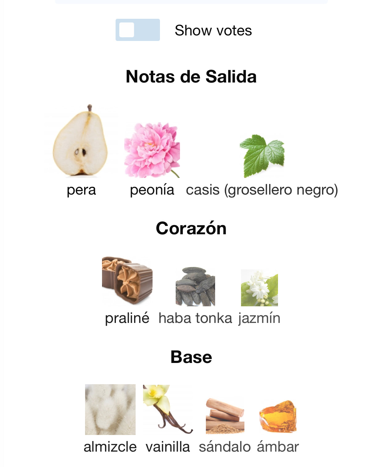 Las Notas de Salida son lavanda, menta y salvia; las Notas de Corazón son vainilla, tabaco y flor de azahar del naranjo; las Notas de Fondo son haba tonka, benjuí y ládano.
